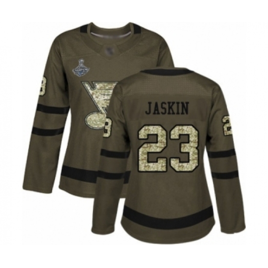Women's St. Louis Blues #23 Dmitrij Jaskin Authentic Green Salute to Service 2019 Stanley Cup Champions Hockey Jersey