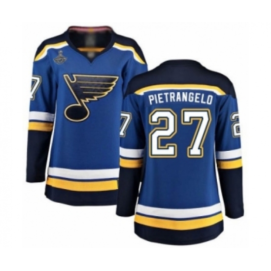 Women's St. Louis Blues #27 Alex Pietrangelo Fanatics Branded Royal Blue Home Breakaway 2019 Stanley Cup Champions Hockey Jersey