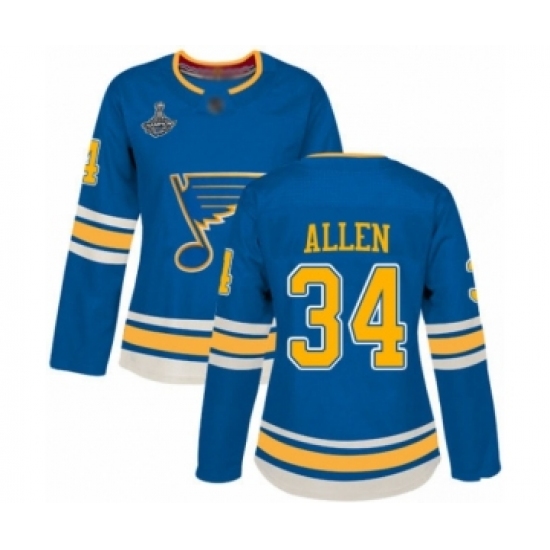 Women's St. Louis Blues #34 Jake Allen Authentic Royal Blue Home 2019 Stanley Cup Final Bound Hockey Jersey