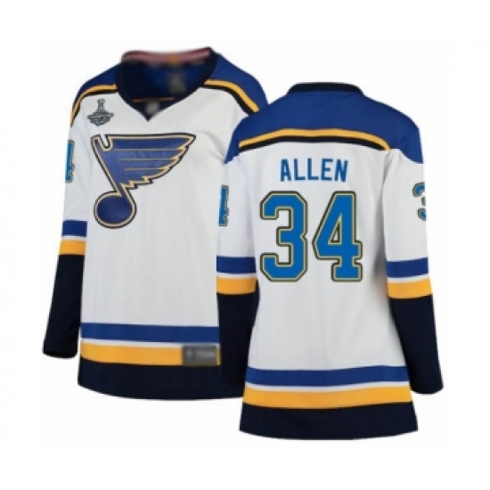 Women's St. Louis Blues #34 Jake Allen Fanatics Branded White Away Breakaway 2019 Stanley Cup Champions Hockey Jersey