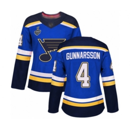 >Women's St. Louis Blues #4 Carl Gunnarsson Authentic Royal Blue Home 2019 Stanley Cup Final Bound Hockey Jersey