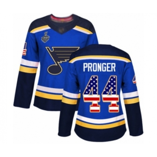 Women's St. Louis Blues #44 Chris Pronger Authentic Blue USA Flag Fashion 2019 Stanley Cup Final Bound Hockey Jersey
