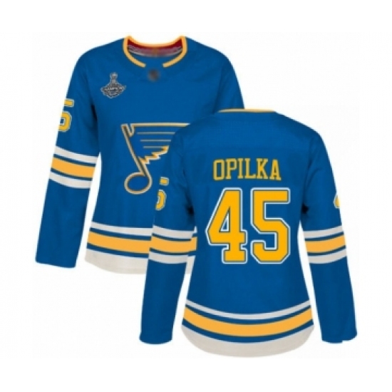 >Women's St. Louis Blues #45 Luke Opilka Premier Navy Blue Alternate 2019 Stanley Cup Champions Hockey Jersey