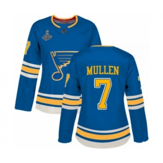 Women's St. Louis Blues #7 Joe Mullen Authentic Navy Blue Alternate 2019 Stanley Cup Champions Hockey Jersey