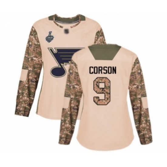Women's St. Louis Blues #9 Shayne Corson Authentic Camo Veterans Day Practice 2019 Stanley Cup Final Bound Hockey Jersey