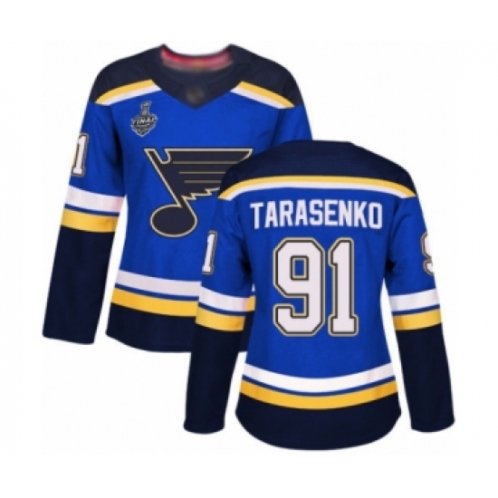 Women's St. Louis Blues #91 Vladimir Tarasenko Authentic Royal Blue Home 2019 Stanley Cup Final Bound Hockey Jersey