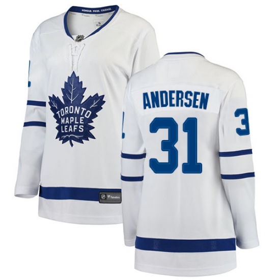 Home>NHL>Toronto Maple Leafs>Frederik Andersen>Women's Toronto Maple Leafs #31 Frederik Andersen Authentic White Away Fanatics Branded Breakaway NHL Jersey