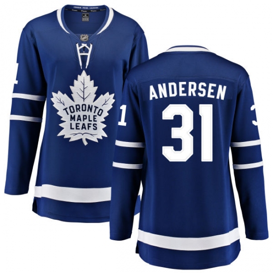Home>NHL>Toronto Maple Leafs>Frederik Andersen>Women's Toronto Maple Leafs #31 Frederik Andersen Fanatics Branded Royal Blue Home Breakaway NHL Jersey