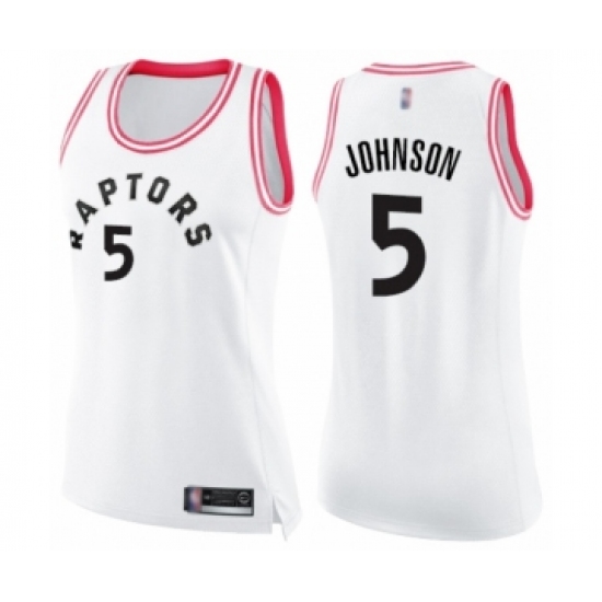 Women's Toronto Raptors #5 Stanley Johnson Swingman White Pink Fashion Basketball Jersey