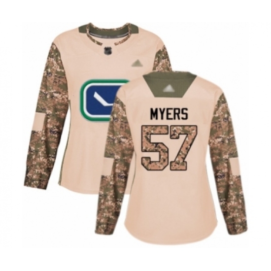 >Women's Vancouver Canucks #57 Tyler Myers Authentic Camo Veterans Day Practice Hockey Jersey