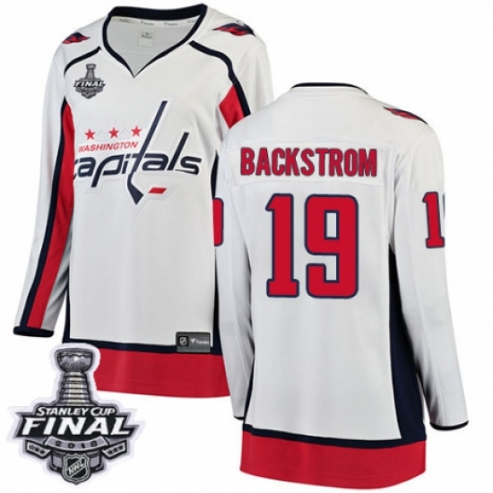 Women's Washington Capitals #19 Nicklas Backstrom Fanatics Branded White Away Breakaway 2018 Stanley Cup Final NHL Jersey