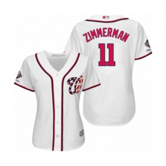 Women's Washington Nationals #11 Ryan Zimmerman Authentic White Home Cool Base 2019 World Series Champions Baseball Jersey