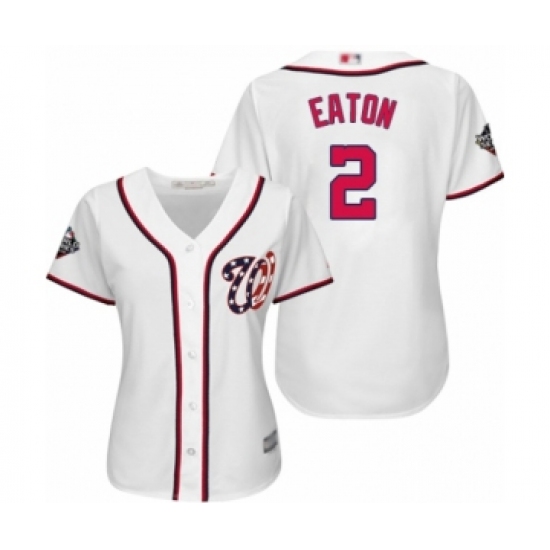 Women's Washington Nationals #2 Adam Eaton Authentic White Home Cool Base 2019 World Series Bound Baseball Jersey