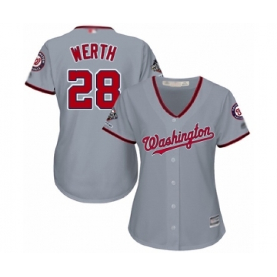 Women's Washington Nationals #28 Jayson Werth Authentic Grey Road Cool Base 2019 World Series Champions Baseball Jersey