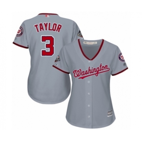 Women's Washington Nationals #3 Michael Taylor Authentic Grey Road Cool Base 2019 World Series Champions Baseball Jersey