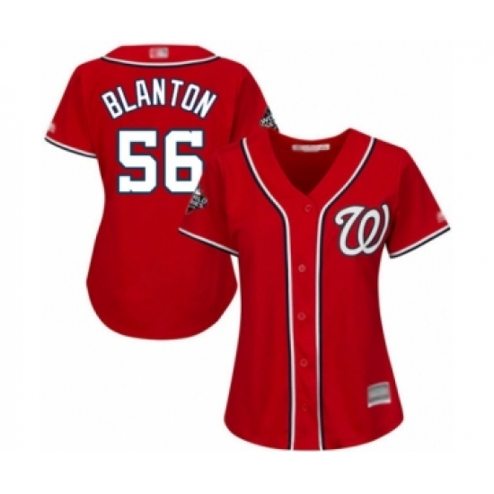 Women's Washington Nationals #56 Joe Blanton Authentic Red Alternate 1 Cool Base 2019 World Series Bound Baseball Jersey