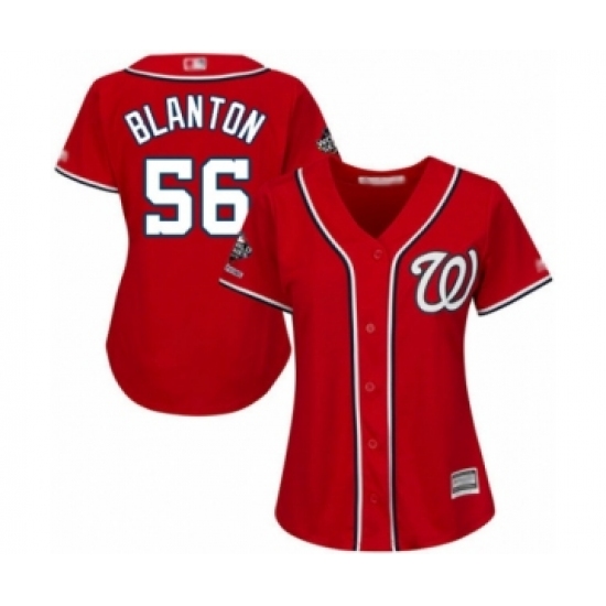 Women's Washington Nationals #56 Joe Blanton Authentic Red Alternate 1 Cool Base 2019 World Series Champions Baseball Jersey