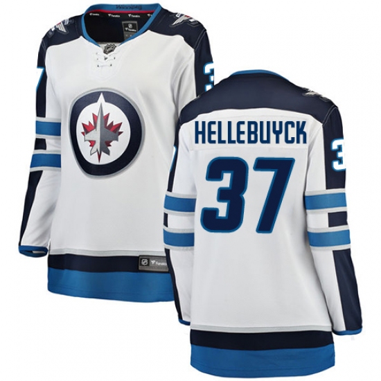 Home>NHL>Winnipeg Jets>Connor Hellebuyck>Women's Winnipeg Jets #37 Connor Hellebuyck Fanatics Branded White Away Breakaway NHL Jersey