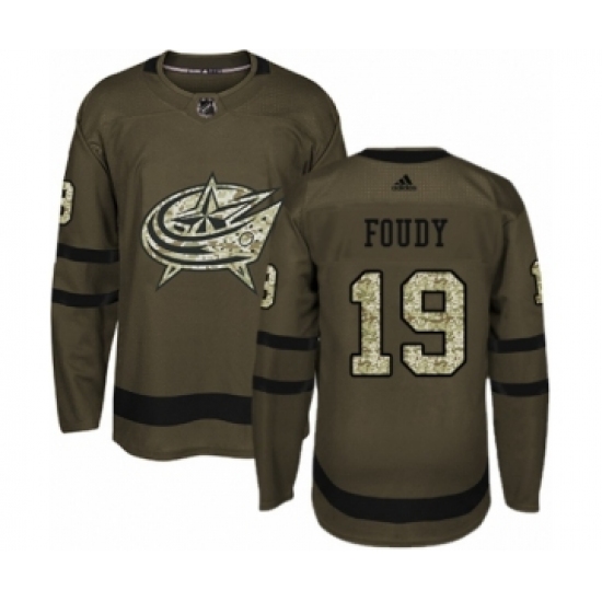 >Youth Adidas Columbus Blue Jackets #19 Liam Foudy Premier Green Salute to Service NHL Jersey