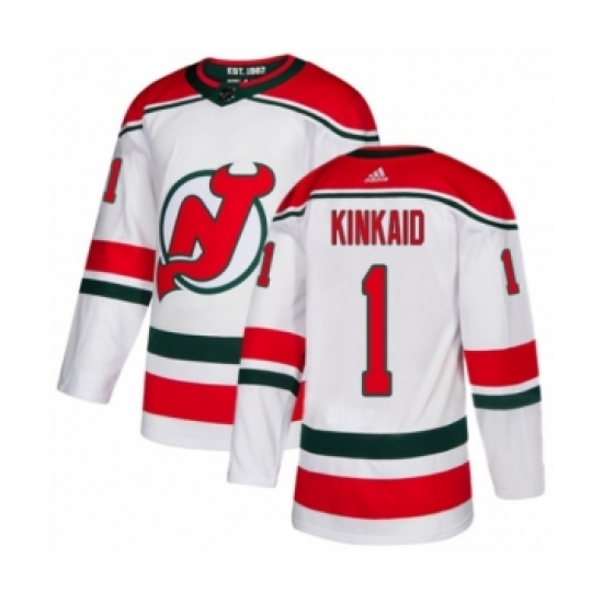 Youth Adidas New Jersey Devils #1 Keith Kinkaid Authentic White Alternate NHL Jersey