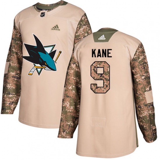 >Youth Adidas San Jose Sharks #9 Evander Kane Authentic Camo Veterans Day Practice NHL Jersey