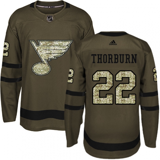 Home>NHL>St. Louis Blues>Chris Thorburn>Youth Adidas St. Louis Blues #22 Chris Thorburn Authentic Green Salute to Service NHL Jersey