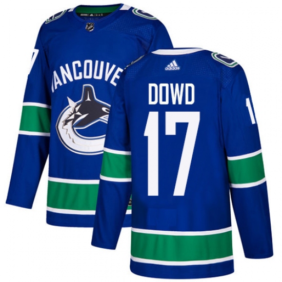 >Youth Adidas Vancouver Canucks #17 Nic Dowd Authentic Blue Home NHL Jersey