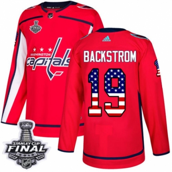 Youth Adidas Washington Capitals #19 Nicklas Backstrom Authentic Red USA Flag Fashion 2018 Stanley Cup Final NHL Jersey