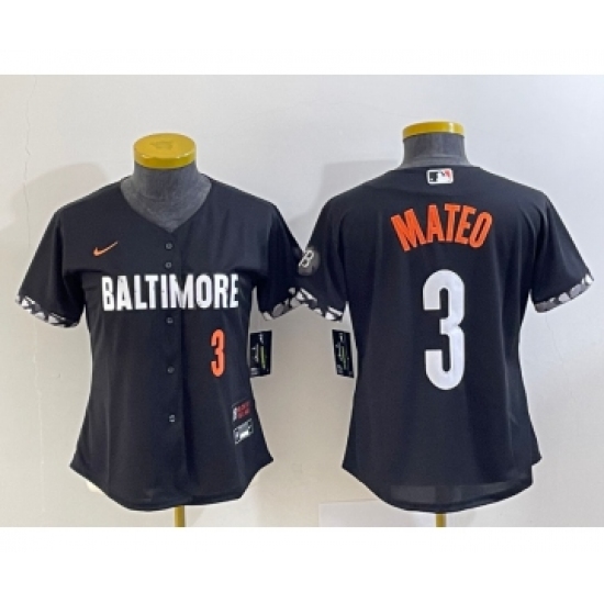 >Youth Baltimore Orioles #3 Jorge Mateo Number Black 2023 City Connect Cool Base Stitched Jersey 2