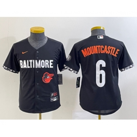 >Youth Baltimore Orioles #6 Ryan Mountcastle Black 2023 City Connect Cool Base Stitched Jersey 1