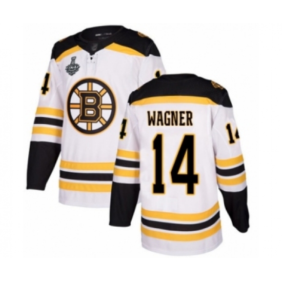 Men's Boston Bruins #14 Chris Wagner Authentic White Away 2019 Stanley Cup Final Bound Hockey Jersey