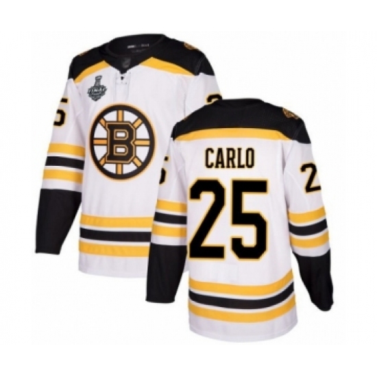 >Youth Boston Bruins #25 Brandon Carlo Authentic White Away 2019 Stanley Cup Final Bound Hockey Jersey