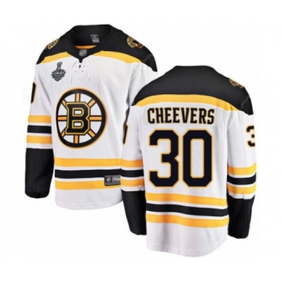Youth Boston Bruins #30 Gerry Cheevers Authentic White Away Fanatics Branded Breakaway 2019 Stanley Cup Final Bound Hockey Jersey