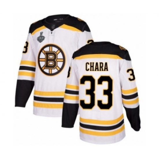 Youth Boston Bruins #33 Zdeno Chara Authentic White Away 2019 Stanley Cup Final Bound Hockey Jersey