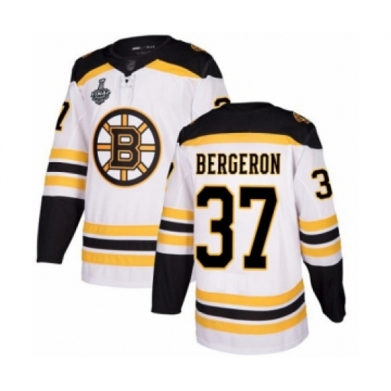 Youth Boston Bruins #37 Patrice Bergeron Authentic White Away 2019 Stanley Cup Final Bound Hockey Jersey
