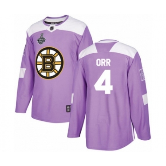 >Youth Boston Bruins #4 Bobby Orr Authentic Purple Fights Cancer Practice 2019 Stanley Cup Final Bound Hockey Jersey