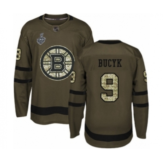 Youth Boston Bruins #9 Johnny Bucyk Authentic Green Salute to Service 2019 Stanley Cup Final Bound Hockey Jersey