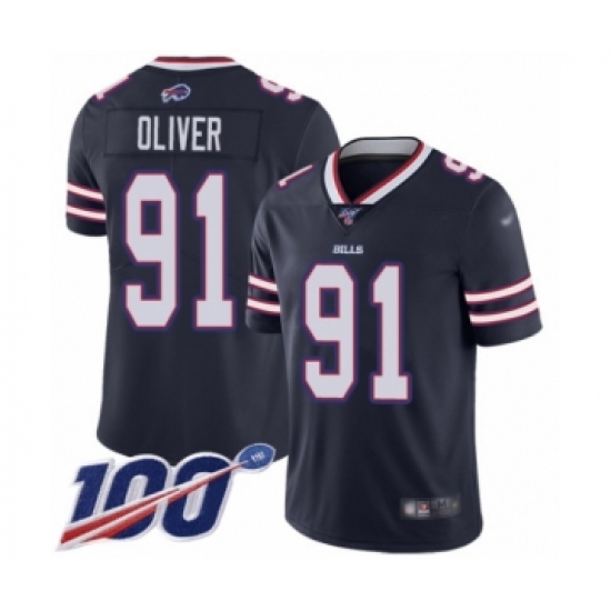 >Youth Buffalo Bills #91 Ed Oliver Limited Navy Blue Inverted Legend 100th Season Football Jersey