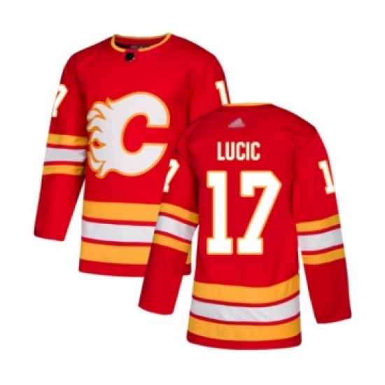 >Youth Calgary Flames #17 Milan Lucic Authentic Red Alternate Hockey Jersey