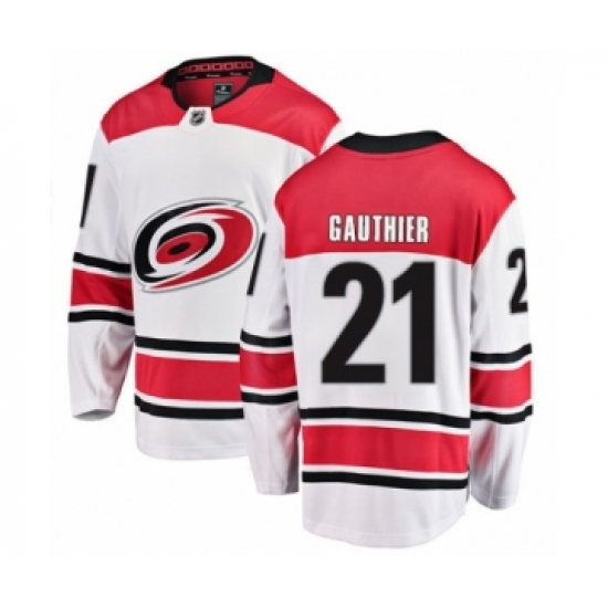 >Youth Carolina Hurricanes #21 Julien Gauthier Authentic White Away Fanatics Branded Breakaway NHL Jersey