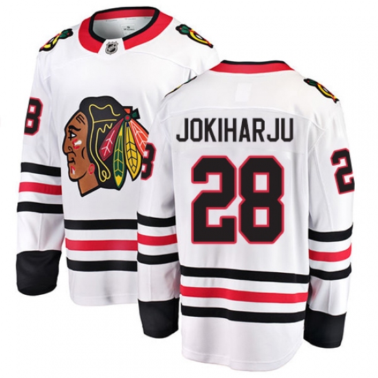 Home>NHL>Chicago Blackhawks>Henri Jokiharju>Youth Chicago Blackhawks #28 Henri Jokiharju Fanatics Branded White Away Breakaway NHL Jersey