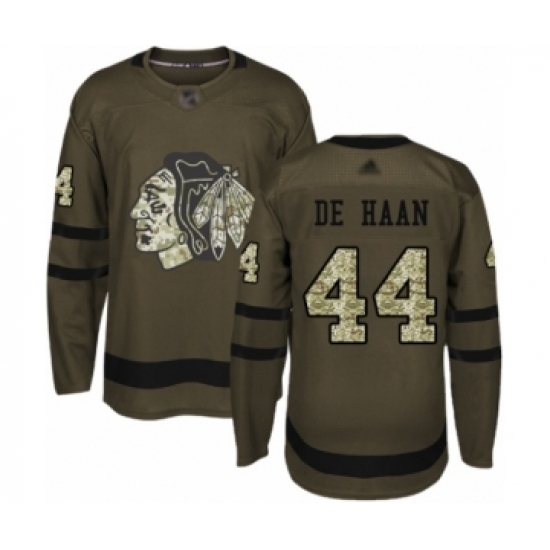 Youth Chicago Blackhawks #44 Calvin De Haan Authentic Green Salute to Service Hockey Jersey
