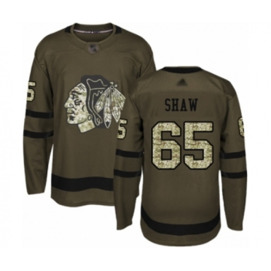 >Youth Chicago Blackhawks #65 Andrew Shaw Authentic Green Salute to Service Hockey Jersey