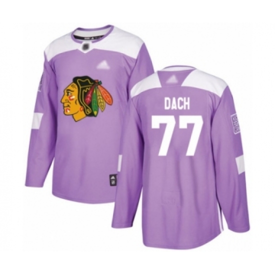 >Youth Chicago Blackhawks #77 Kirby Dach Authentic Purple Fights Cancer Practice Hockey Jersey
