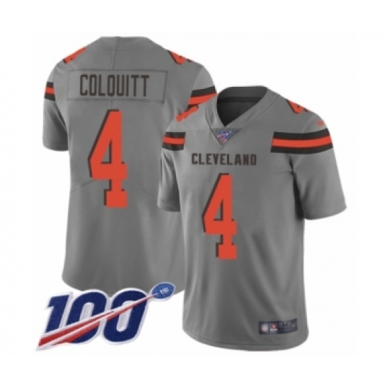 >Youth Cleveland Browns #4 Britton Colquitt Limited Gray Inverted Legend 100th Season Football Jersey