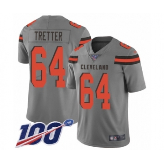 Men's Cleveland Browns #64 JC Tretter Limited Gray Inverted Legend 100th Season Football Jersey
