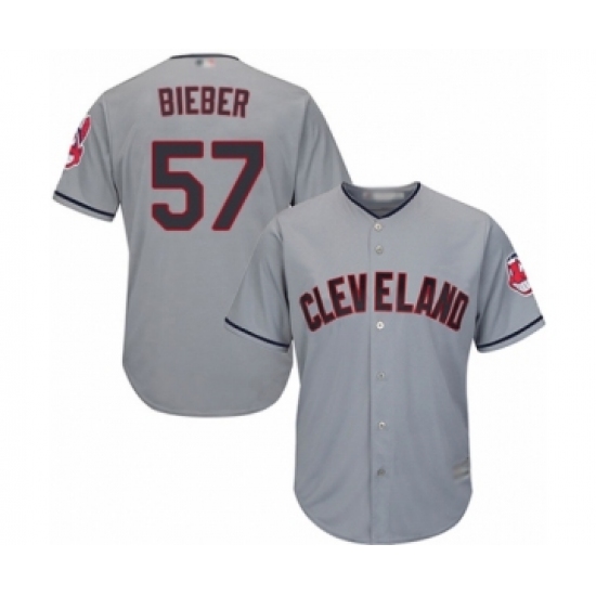 >Youth Cleveland Indians #57 Shane Bieber Authentic Grey Road Cool Base Baseball Jersey