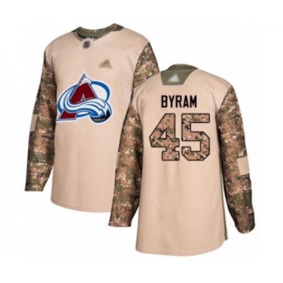 Men's Colorado Avalanche #45 Bowen Byram Authentic Camo Veterans Day Practice Hockey Jersey