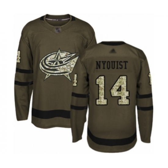 >Youth Columbus Blue Jackets #14 Gustav Nyquist Authentic Green Salute to Service Hockey Jersey