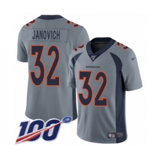 >Youth Denver Broncos #32 Andy Janovich Limited Silver Inverted Legend 100th Season Football Jersey